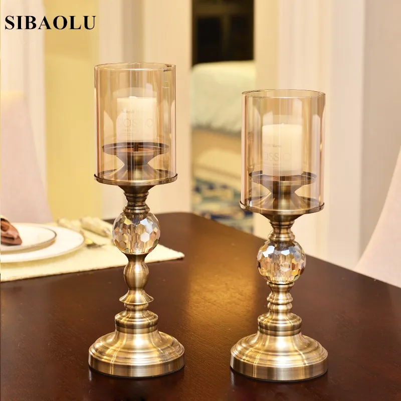 شراءمعلومات اضافية الفاخرة الأوروبية الأمريكية الجدول المفروشات الراقية الكريستال المعادن شمعدان الحرف لوازم ديكورات زفاف للمنزل سبائك حامل شموع