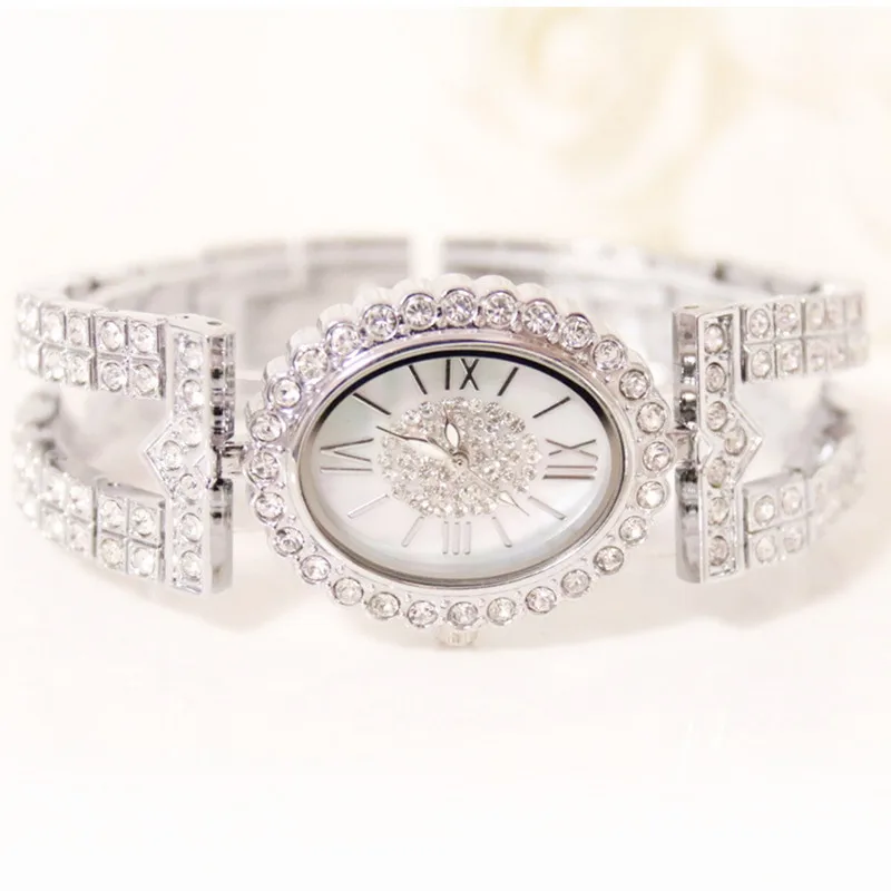 استعارات من ساعة يد نسائية الراقية سلسلة ووتش مخصص كامل حجر الراين الإناث الجدول الفضة حجر الراين ووتش