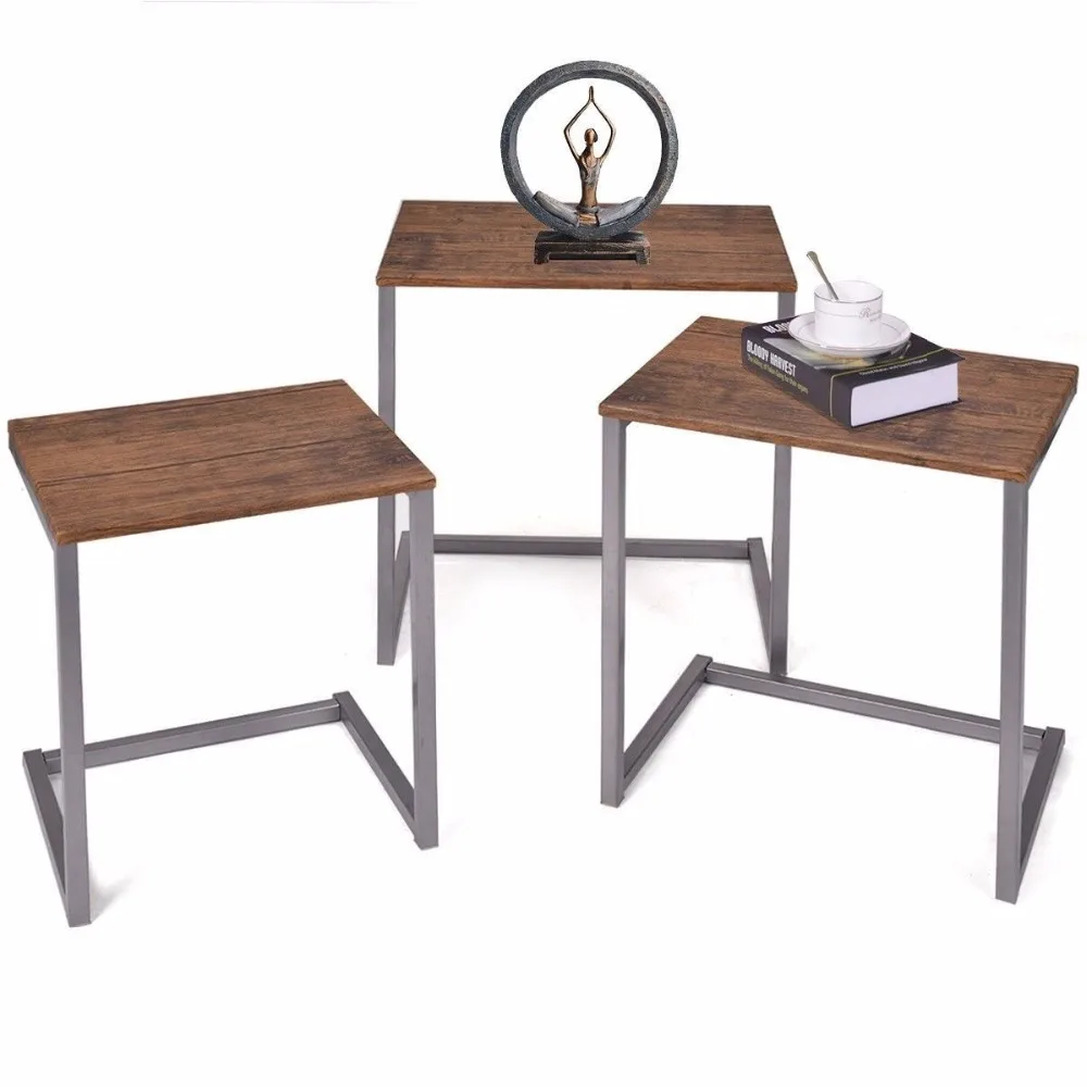 استعارات من Giantex 3 قطعة الصلب التراص التعشيش القهوة نهاية الجدول طقم مكتب منضدة الأثاث المنزلي HW52229